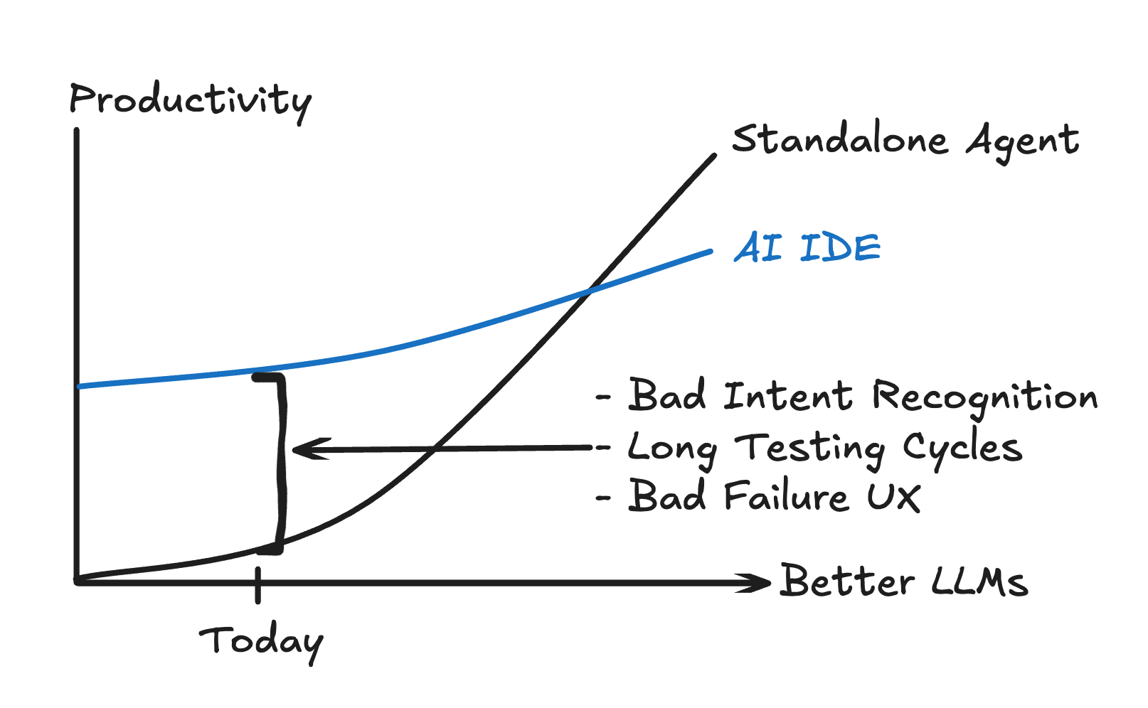 If that happens often, developers end up preferring to stay in the IDE where they can manually takeover instead of re-prompting a long-running AI agent.